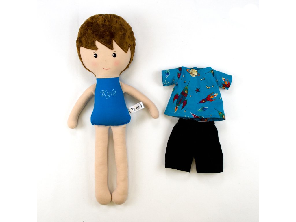 Kyle se rád dívá na oblohu a pozoruje letadla a vrtulníky, nejraději ze všeho by ale viděl startovat raketoplán. Kyle je skvělým kopilotem pro každého malého kluka, co sní o tom, že také jednou bude létat. Dbáme na zdraví a bezpečí našich dětí,a proto jsou panáčci v souladu s kritérii EU pro bezpečnost hraček. Panáček je vhodný pro děti od narození. Má oblečené tričko s raketou a černými kraťásky. Je veliký asi 45cm, má vyšívaný obličej s namalovanými tvářičkami. Panáček má sundavací tričko a kraťasy, které jsou součástí balení. Panáčka dodáváme v dárkovém balení v kartonové krabici a s adopčním certifikátem. Všechny oblečky a doplňky jsou navrženy tak, aby je zvládly obléci a svléci malé děti.